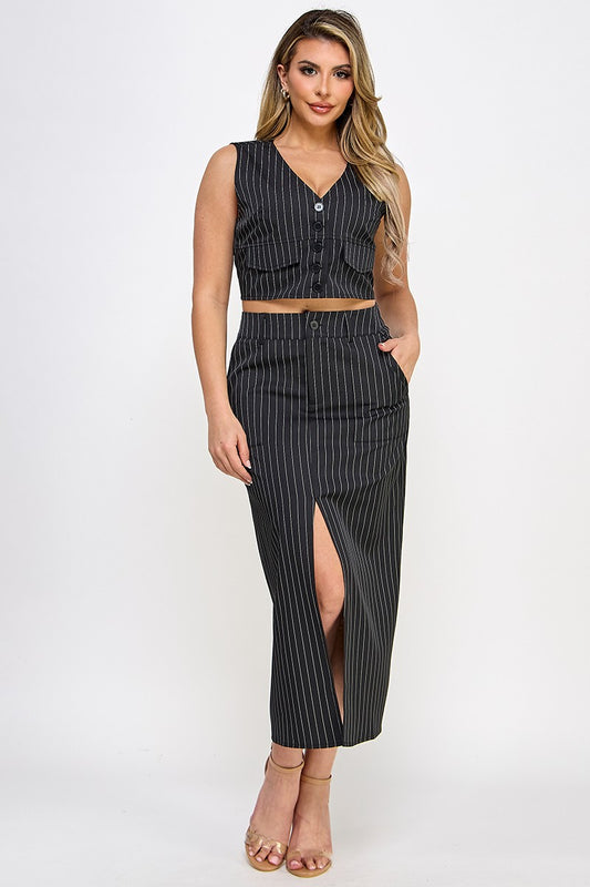 Black Midi Pencil Skirt Set